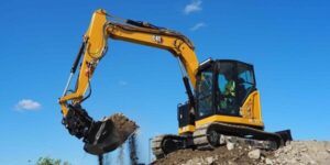 Gravemaskinen er utstyrt med den nyeste teknologien fra Caterpillar og har fastbom.